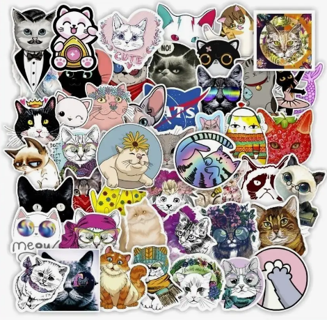 Стикеры Котики для детей 50 штук