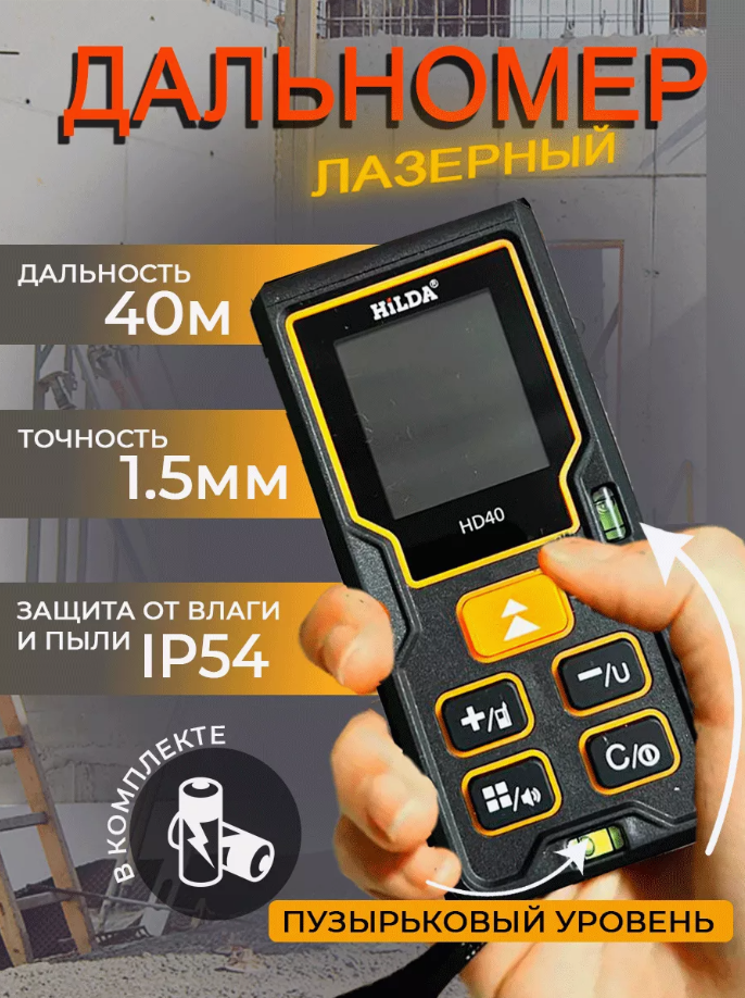 Лазерная рулетка дальномер Hilda HD40